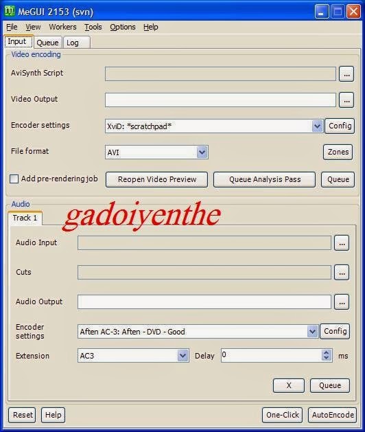 Trở lại giao diên chính của MeGUI, lúc này các bạn sẽ thấy ở khung Video encoding, mục AviSynth Script là đường dẫn đến file avs vừa tạo ra, còn ở mục Video Output các bạn hãy chọn đường dẫn cho file video xuất ra (mặc định là chung folder với file avs).